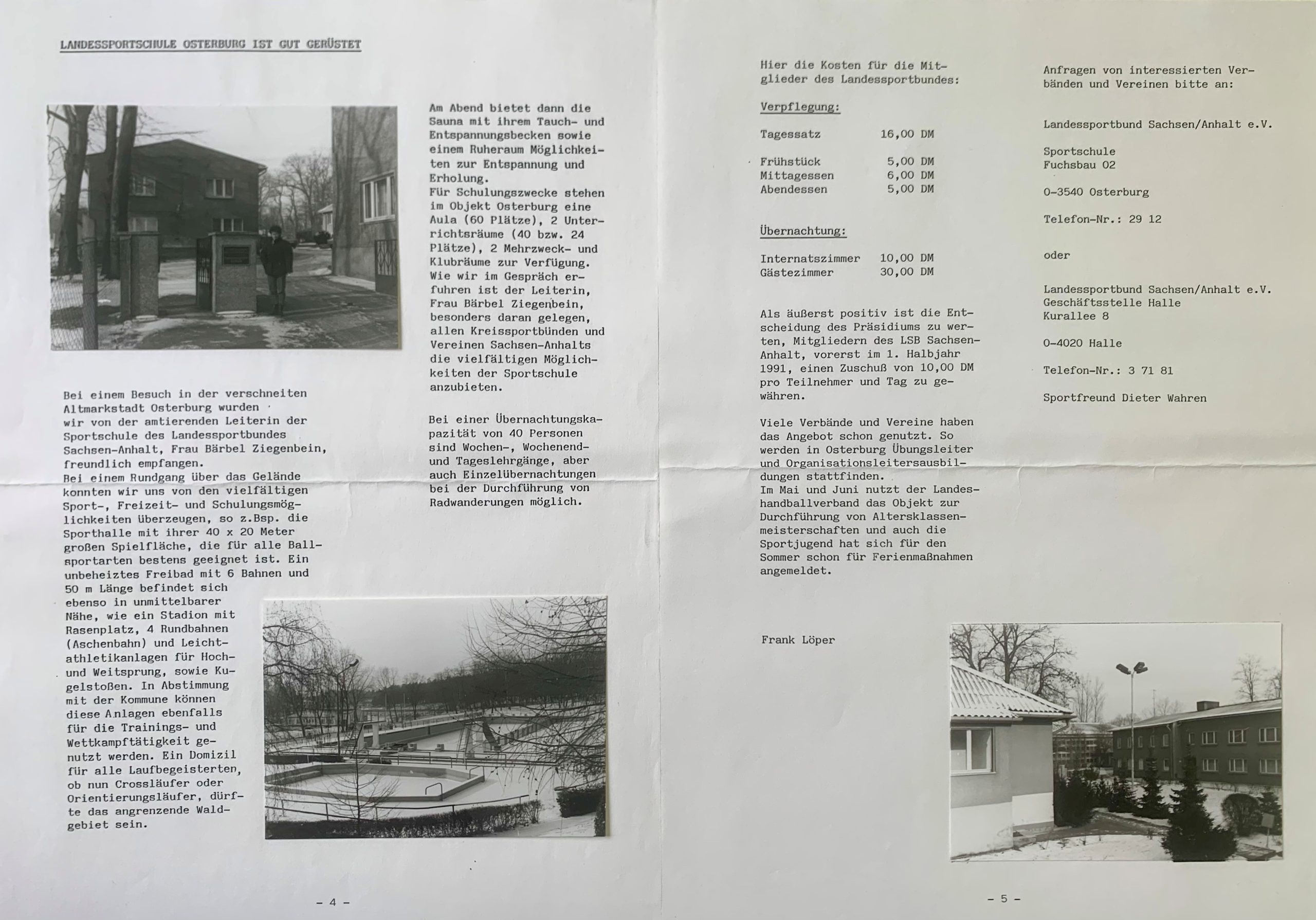 Am 1. Januar 1961 übernahm der damalige Bezirk Magdeburg + Potsdam das Gelände und richtete dort eine Bezirkssportschule ein, in der Übungsleiter*innen sowie Kampf- und Schiedsrichter*innen verschiedener Sportarten aus- und weitergebildet wurden. 1991 übernahm der Landessportbund Sachsen-Anhalt e.V. die Bezirkssportschule.