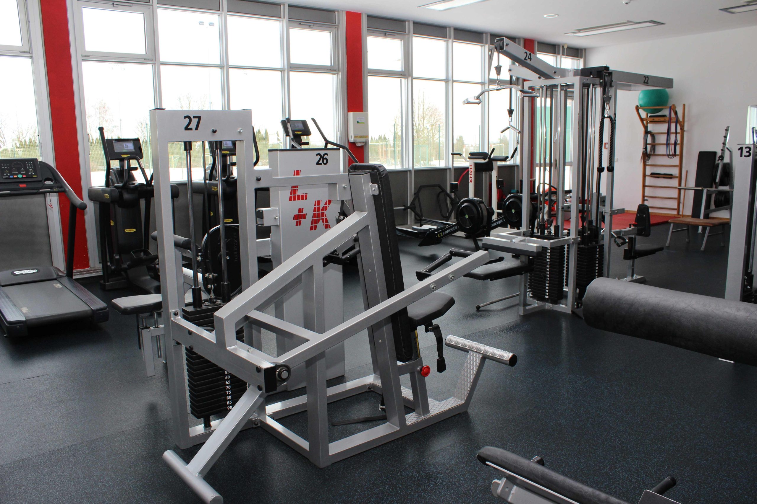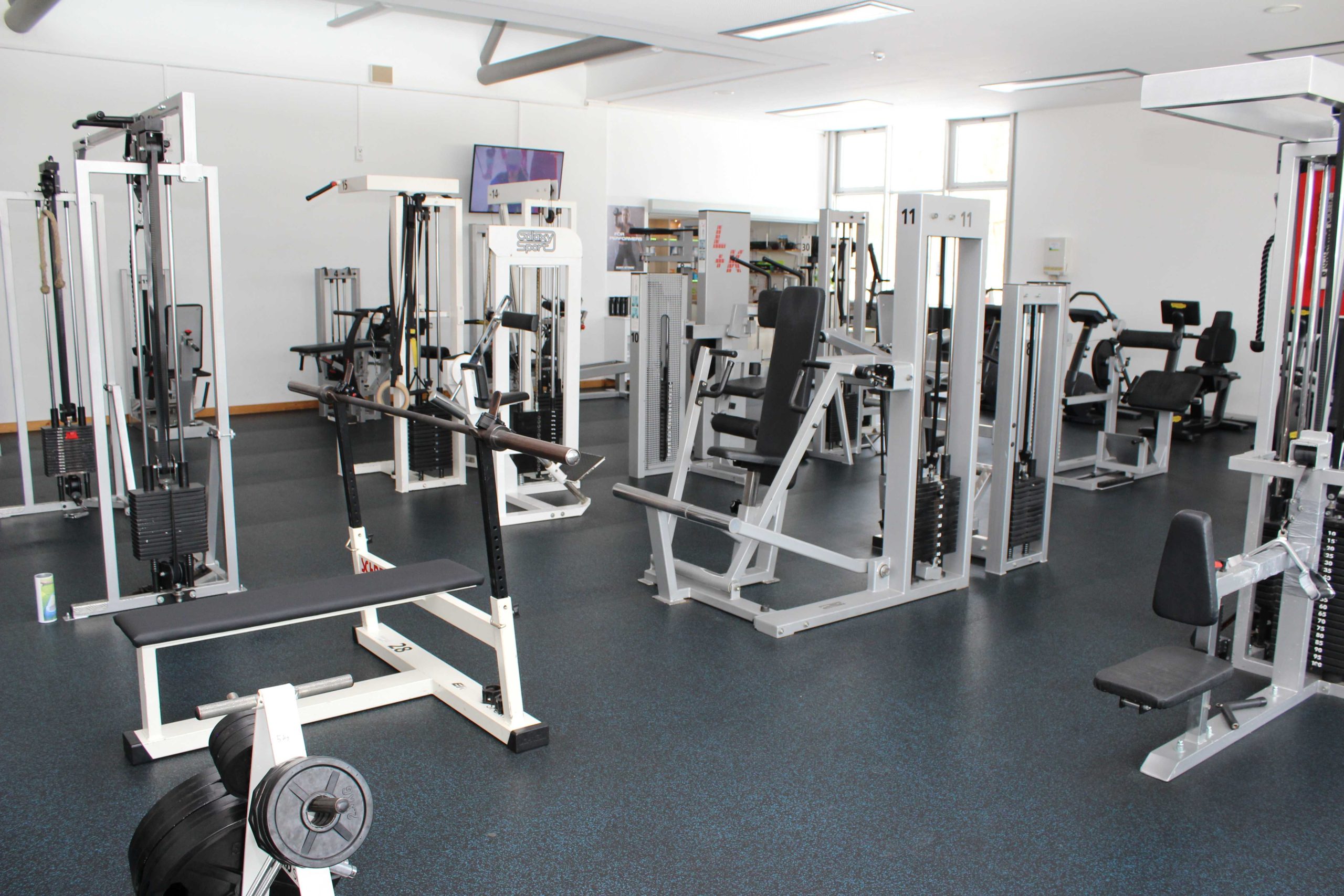 Die Sporthalle kann durch Trennwände in drei Nutzungsbereiche unterteilt werden. Ein Highlight ist die integrierte 50-Meter-Laufbahn. Mit einer Vielzahl an Sportgeräten und einer Akustikanlage ist die Halle multifunktional einsetzbar: