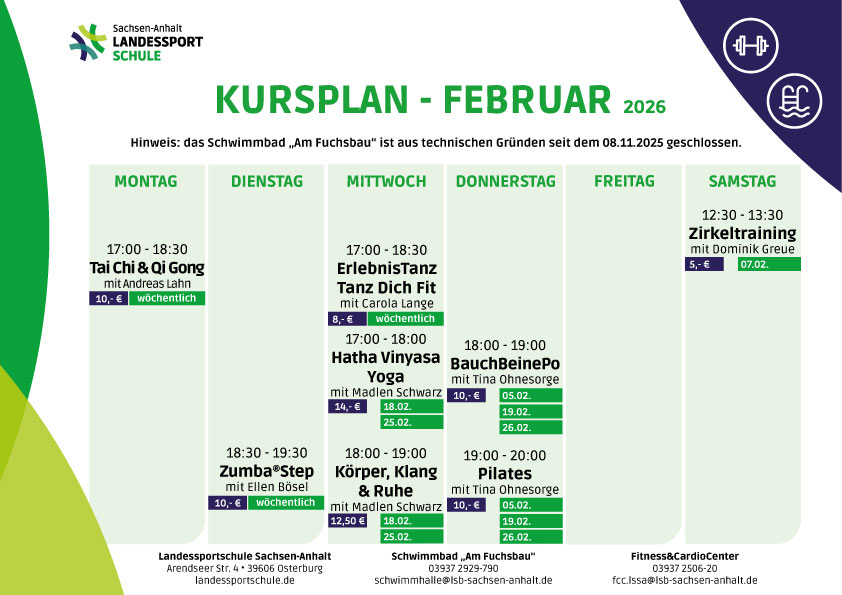 Mit unserem neuen Februar-Kursplan erwarten dich abwechslungsreiche Trainingsangebote – perfekt, um motiviert in dein neues Sportjahr zu starten.Â